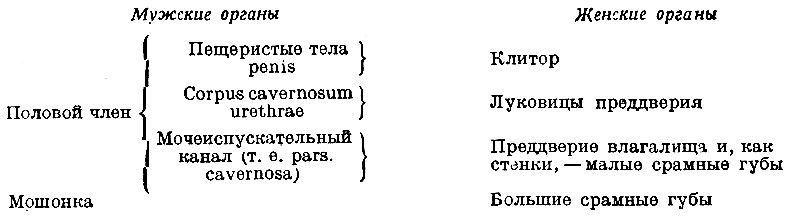 Обладая теперь сведениями о происхождении половых органов, мы можем указать между ними тождественные в морфологическом смысле.